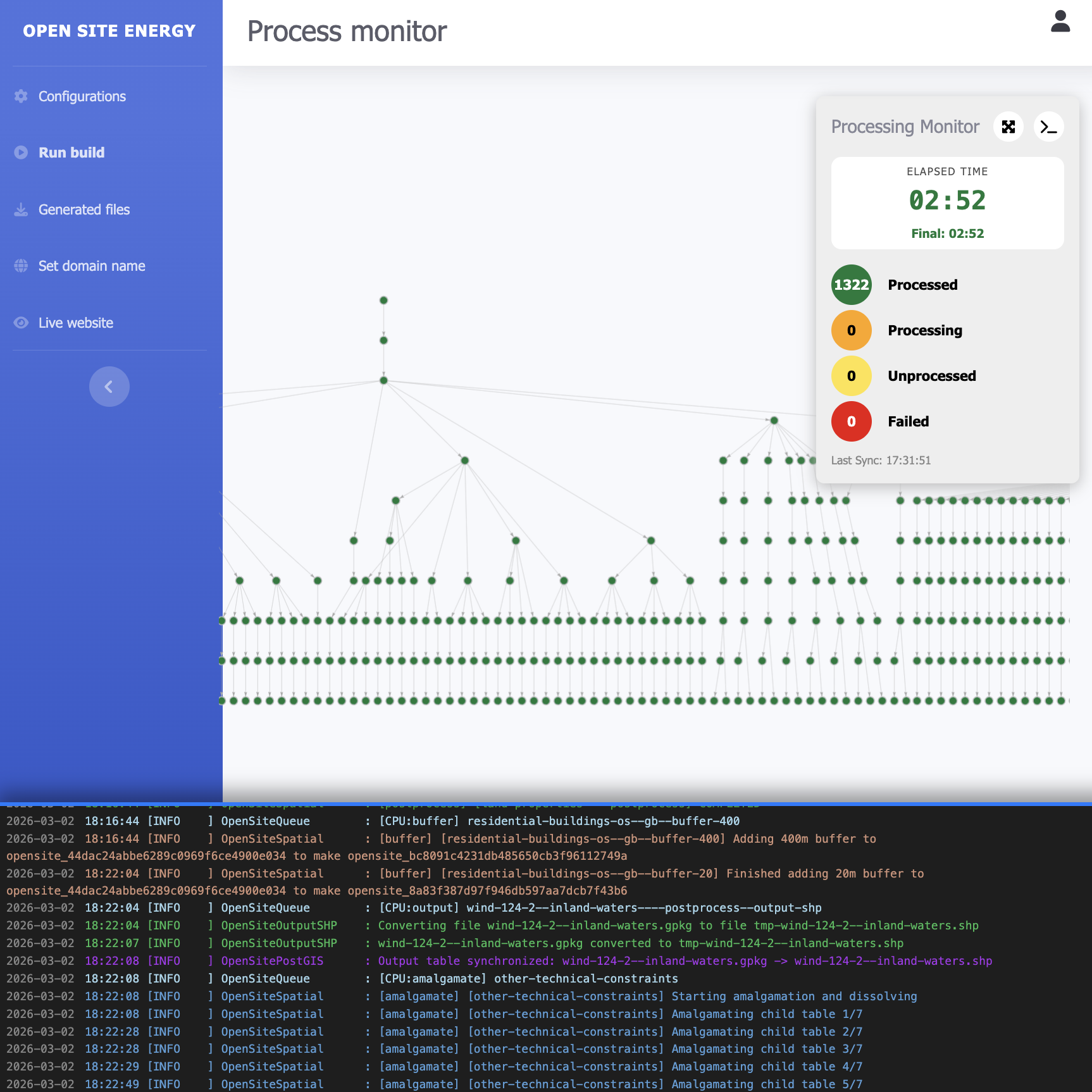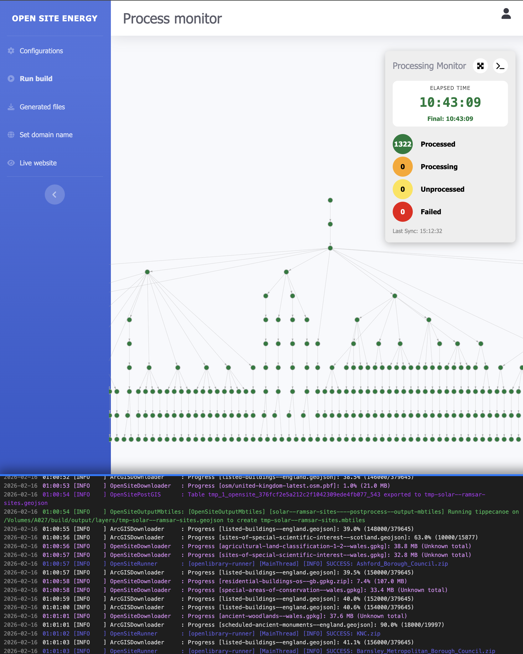 It takes between 2 and 20 hours to generate the final Open Site Energy GIS layers, depending on the number of constraint layers required. In tests it was possible to create an onshore-wind-only constraint map in 2.5 hours (see this link) and we’re working on reducing this time even further.