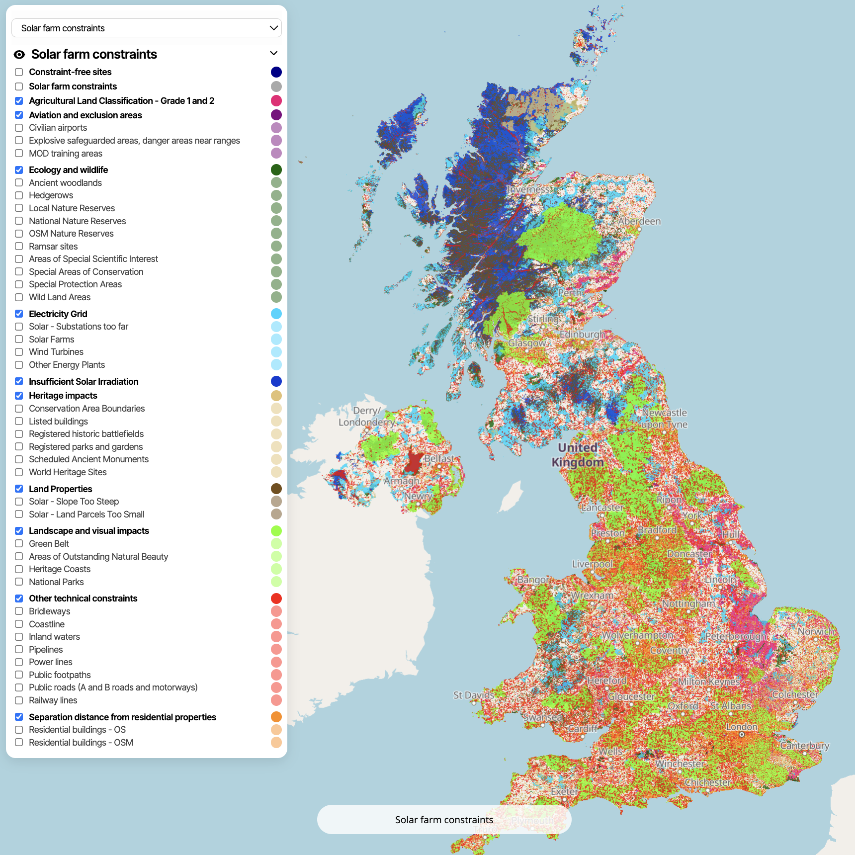 Selecting appropriate sites for onshore wind turbines or solar farms is often complicated and time consuming. Open Site Energy leverages a fully open source approach to renewable site selection so individuals and organisations save time selecting the best sites.